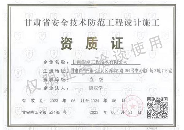 甘肅省安全技術防范工程設計施工資質證